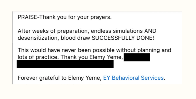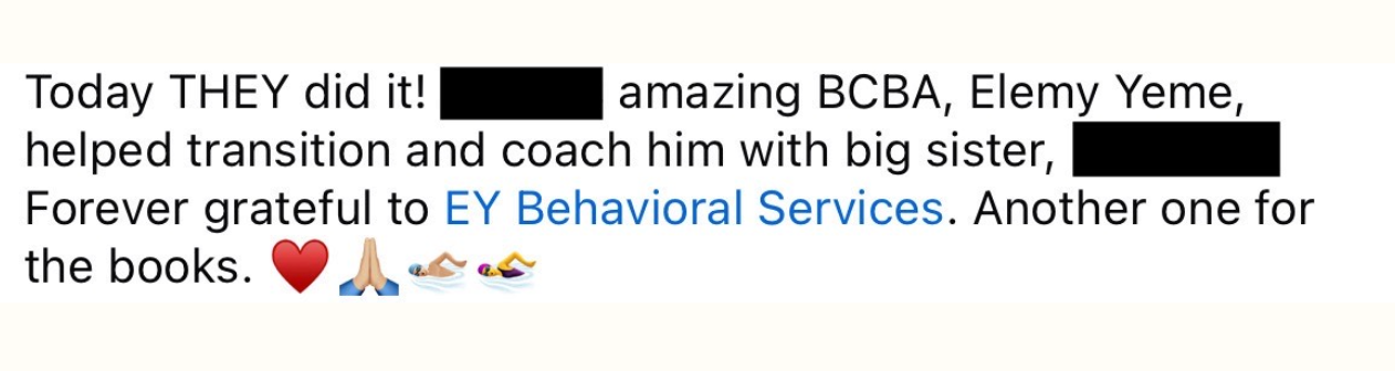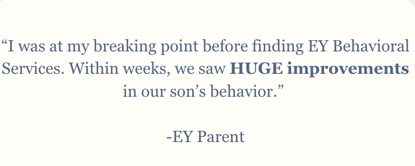 We do not and cannot ethically guarantee specific behavior outcomes or timelines. Every child and family is different.