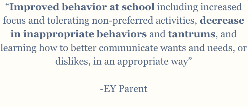 Every child and family is different, and these results are not a guarantee of what any specific child or family will experience.